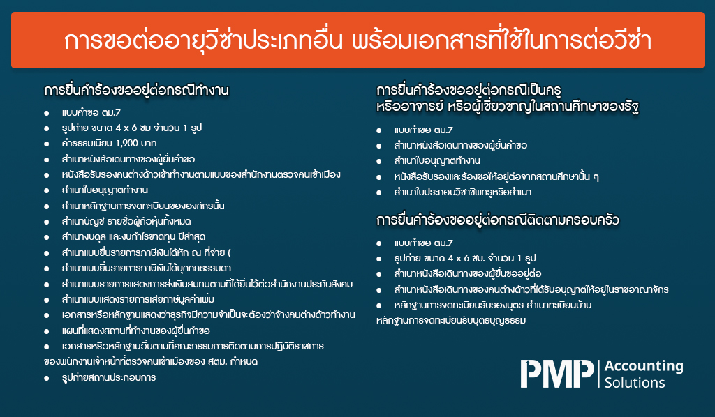- สำเนาหนังสือเดินทางของคนต่างด้าวที่ได้รับอนุญาตให้อยู่ในราชอาณาจักร