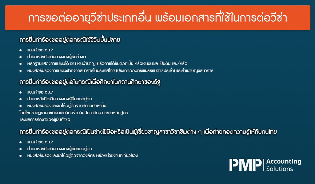 - สำเนาหนังสือเดินทางของผู้ยื่นขออยู่ต่อ